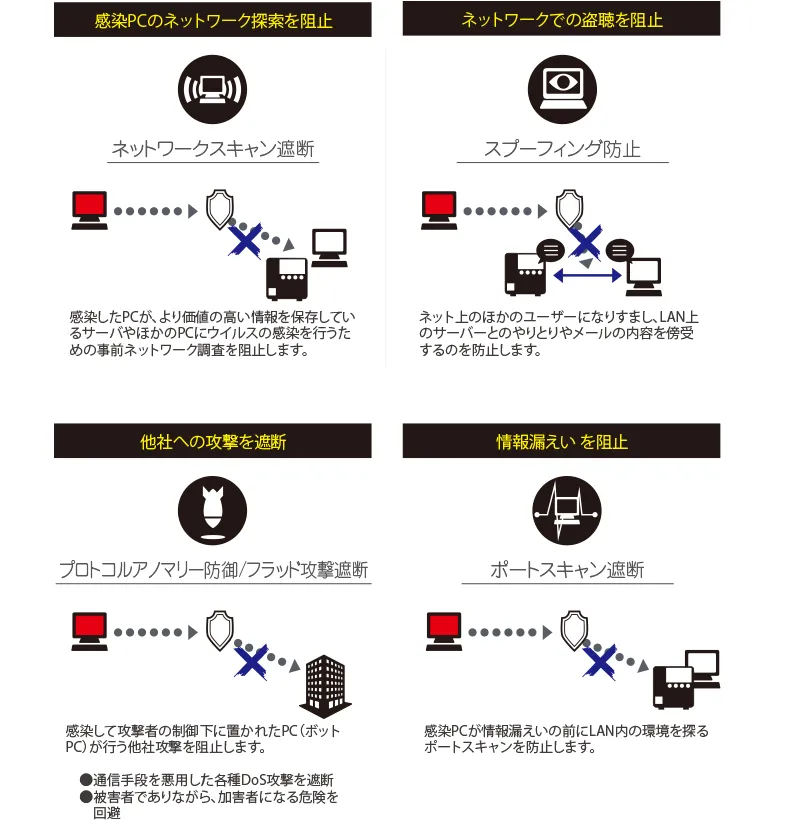 • ウィルス拡散、情報漏えいから社内LANを保護